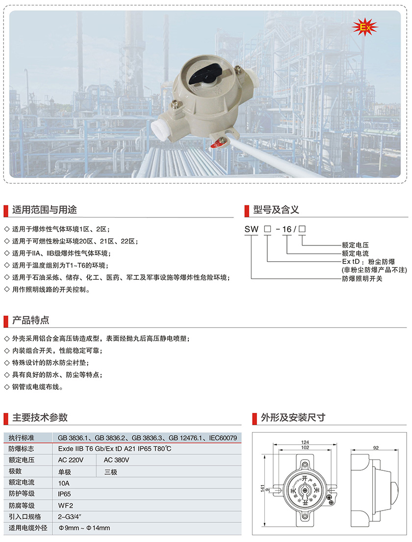 SW-16系列防爆照明开关(IIB、Ex Td)